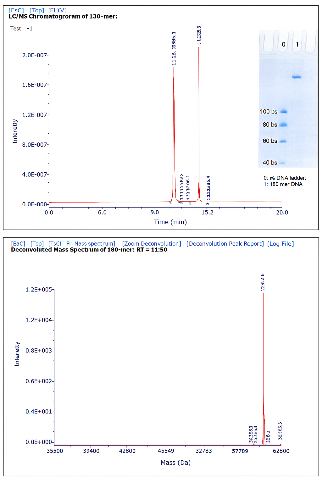 All custom oligo synthesis are routinely checked for length, purity, and composition. Long oligos are typically quality checked by PAGE, ESI-MS, and/or CE. Our global quality control capabilities include MALDI-TOF mass spectrometry, electrospray ionization mass spectrometry (ESI-MS), capillary electrophoresis (CE), and polyacrylamide gel electrophoresis (PAGE). If you are dissatisfied and report an oligo problem within 30 days of order receipt, we will gladly remake your oligo free of charge or provide a credit for the purchase amount.